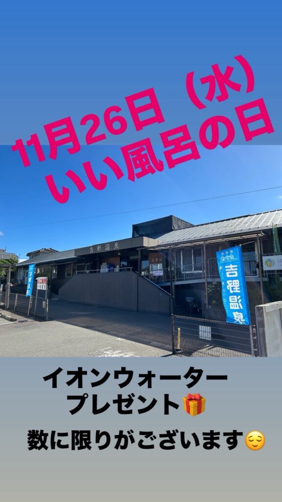 【イベント告知】11月26日(水)はいい風呂の日!サマーウォータープレゼント!